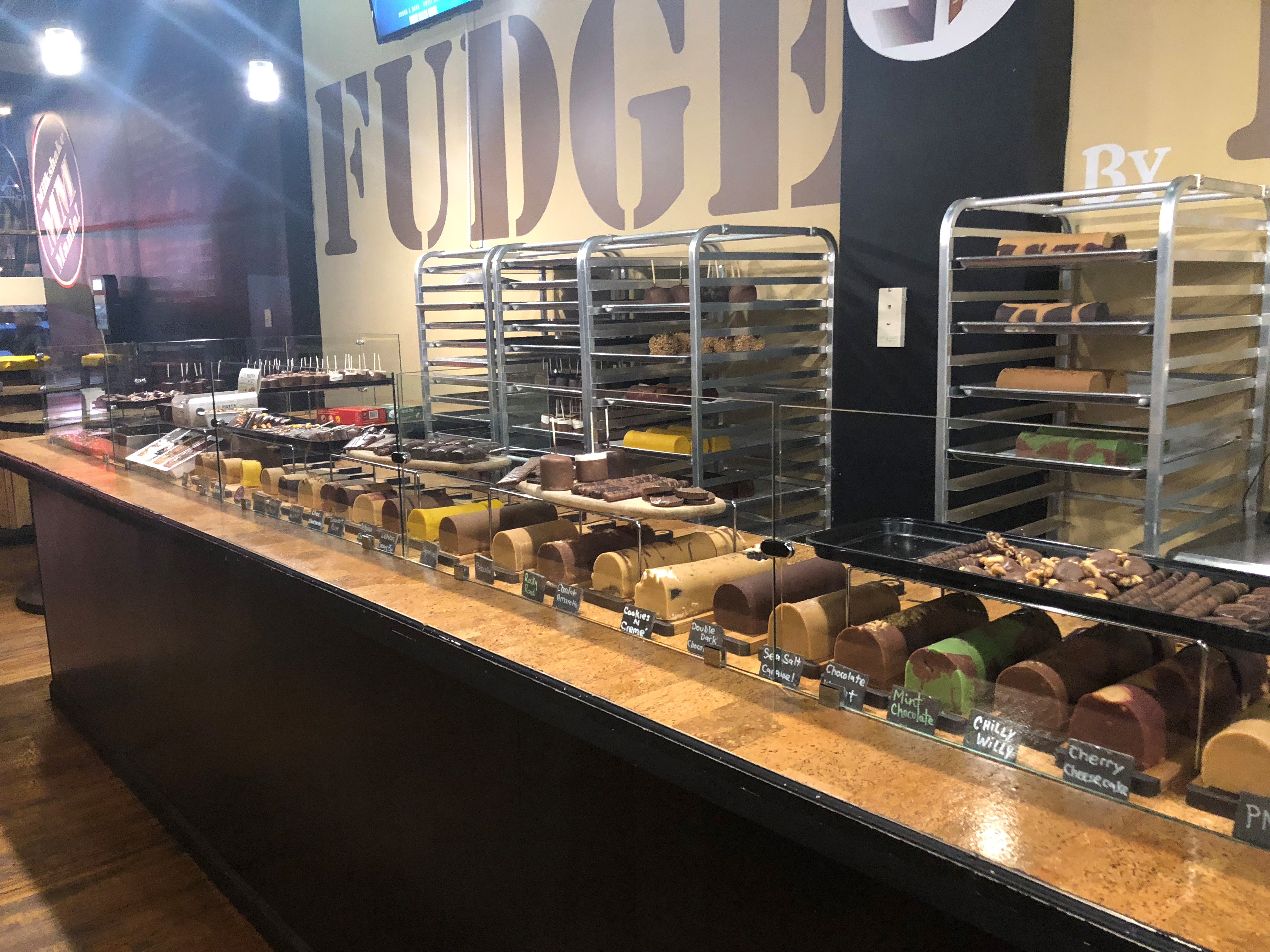 Fudge Farm offers fudge, chocolate covered pretzels, caramel apples and other sweet treats but my favorite thing that they offer is their milkshakes. They offer 18 different shakes that are not your average vanilla or chocolate. My go to milkshake flavor is the Jaggerbush which is peanut butter chocolate ice cream topped with chocolate covered pretzels. Throughout the milkshake itself there are chocolate covered pretzel pieces that are small enough to fit through my straw. I really appreciate this because a lot of milkshake places offer chunky milkshakes but yet the chunks aren’t able to fit through the straw and require a spoon. Other milkshake options include Urban Tap, Marios, Pie Bar, and many more. The Urban Tap is salted caramel ice cream topped with hot brownies. Now when they say hot brownies they don’t mean dry, warm temperature brownies. They mean moist, warm, melt in your mouth brownies! Another thing I love about Fudge Farm milkshakes is the consistency of the milkshake! They are not too thin where is feels like you are drinking melted ice cream, but it is the perfect thickness to the point where it makes you truly sit back to take a moment to appreciate creamy, goodness in your cup.